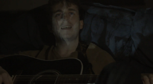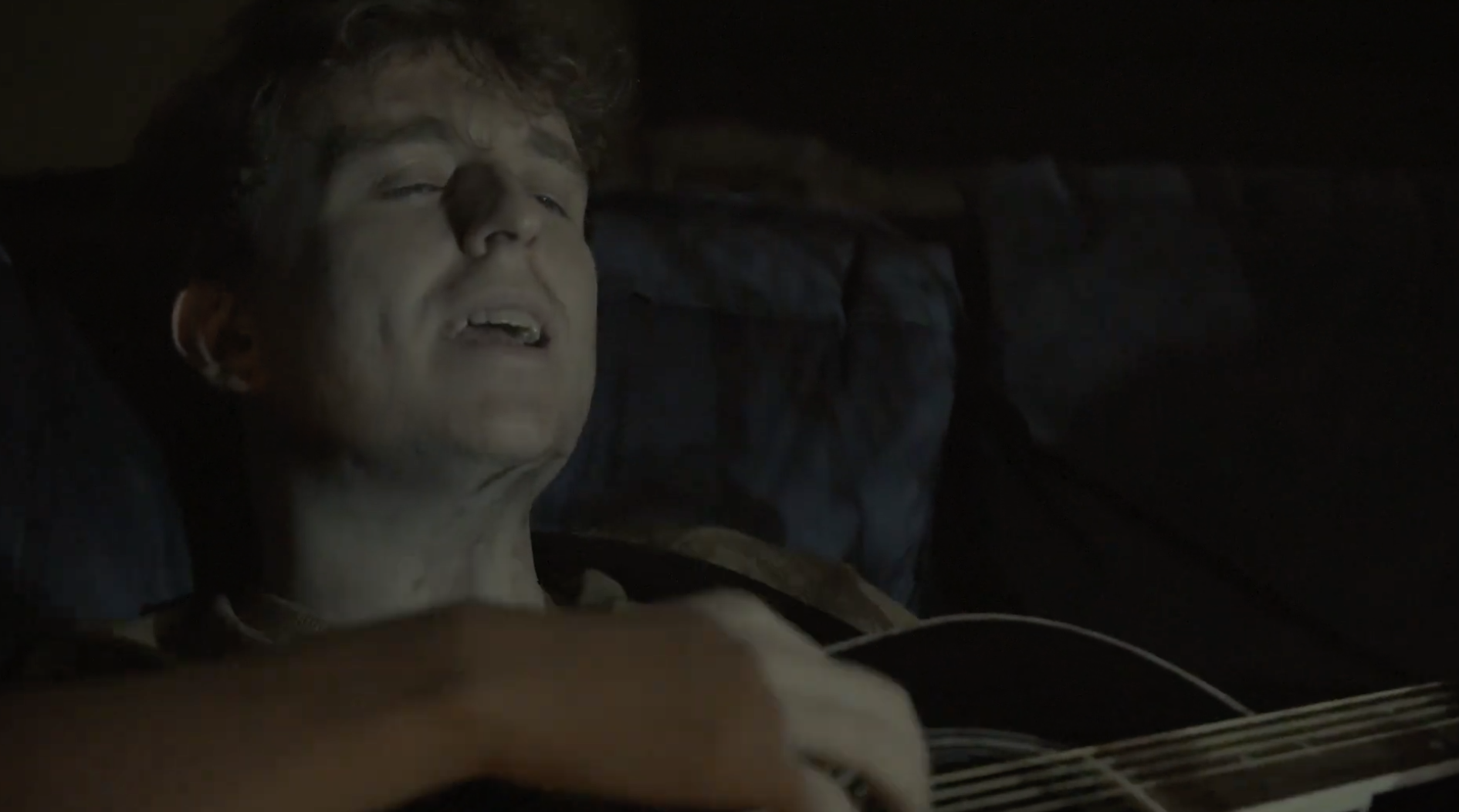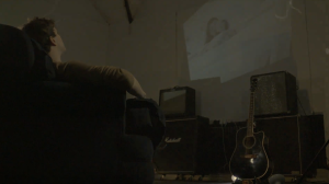 - We developed the idea to use a projector that ran a series of images for the entire length of the track, and with those projected across the wall Dan could watch on. We also used the projector to project those images across Dan as he led on the sofa playing guitar to add an additional element to the video.