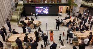• With a large space being occupied by the event and the potential for attendees being spread out – rather than a traditional seated auditorium set up – we set up a wide angle camera up high at the back of the room to be able to capture the entire space, and then a main camera at ground level following the event as it unfolded.